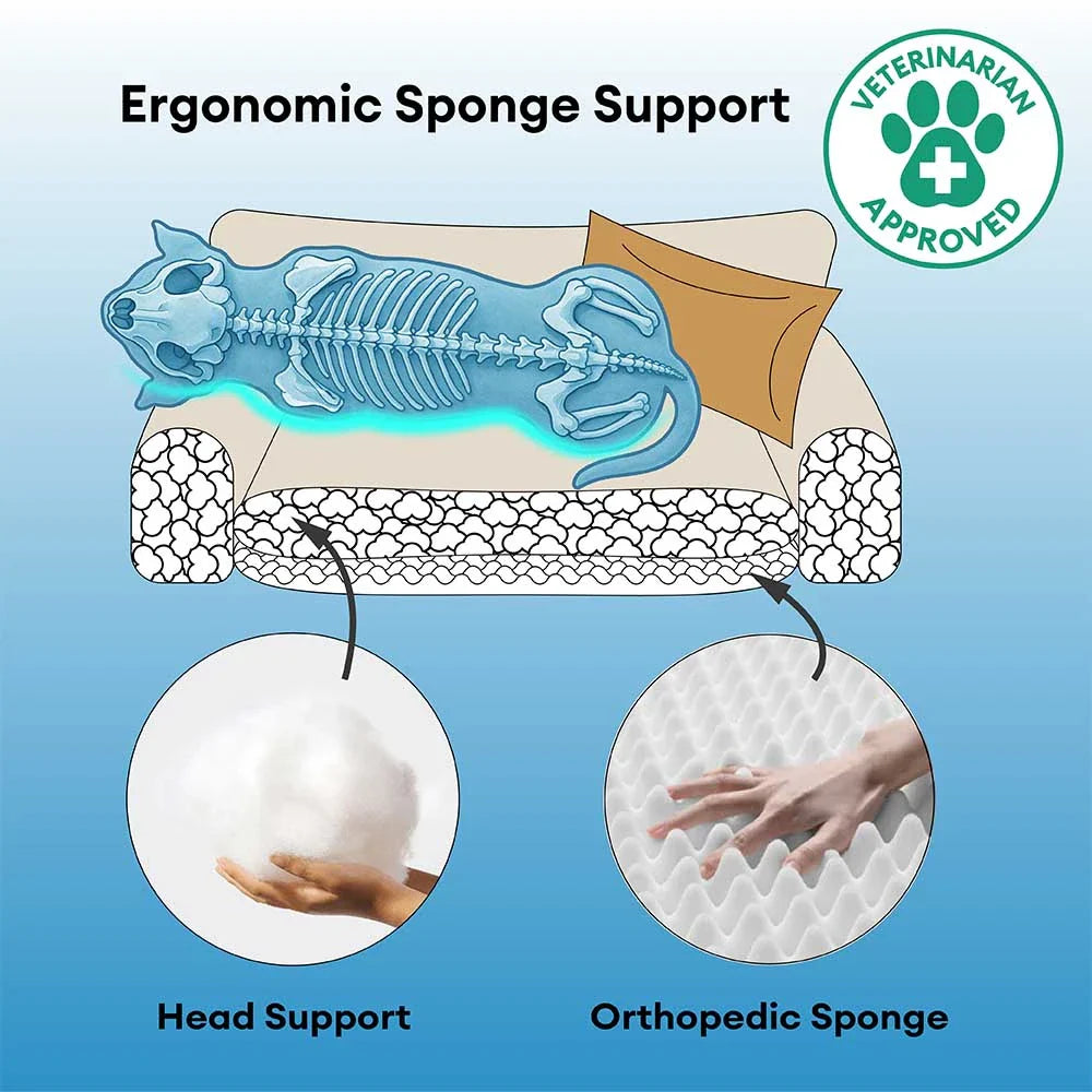 Headrest Bolsters & Matching Pillow: Raised bolster sides and a detachable pillow provide head and neck support, giving your pet a secure and restful spot to lean into.