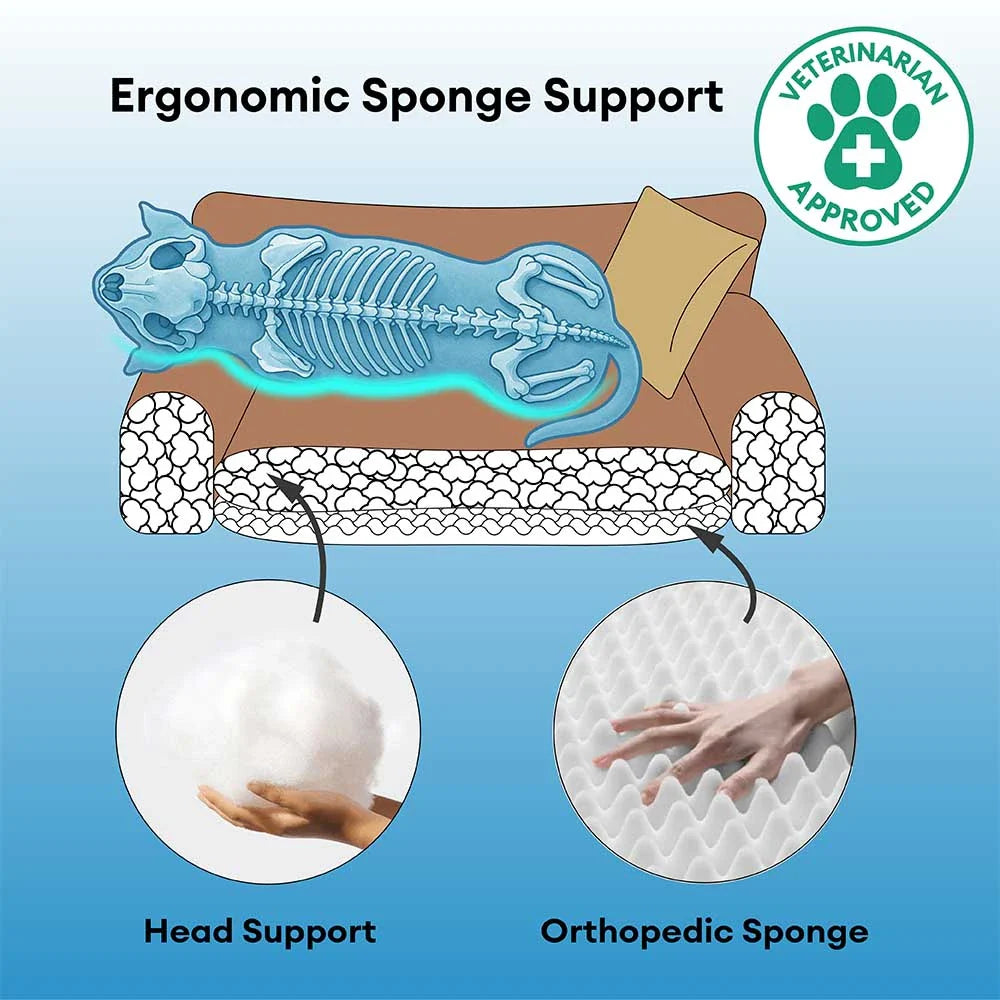 Bolster & Pillow Design: Raised bolsters and matching pillows provide head, neck, and spine support while creating a secure, cozy lounge your pet will love.