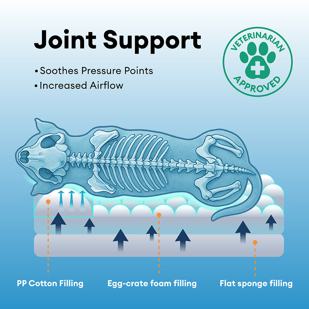- Pressure-Relieving Supportive Sponge: Say goodbye to stiff joints and hello to cozy relief. The orthopedic-grade sponge gently cushions hips, elbows, and joints—ideal for senior dogs, post-surgery recovery, or breeds prone to joint issues.