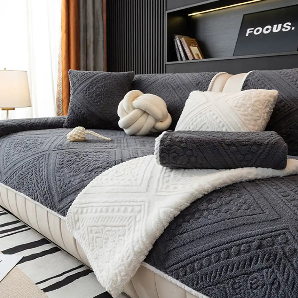 All Season Nordic Style Carved Plush Decorative Non-Slip Couch Cover