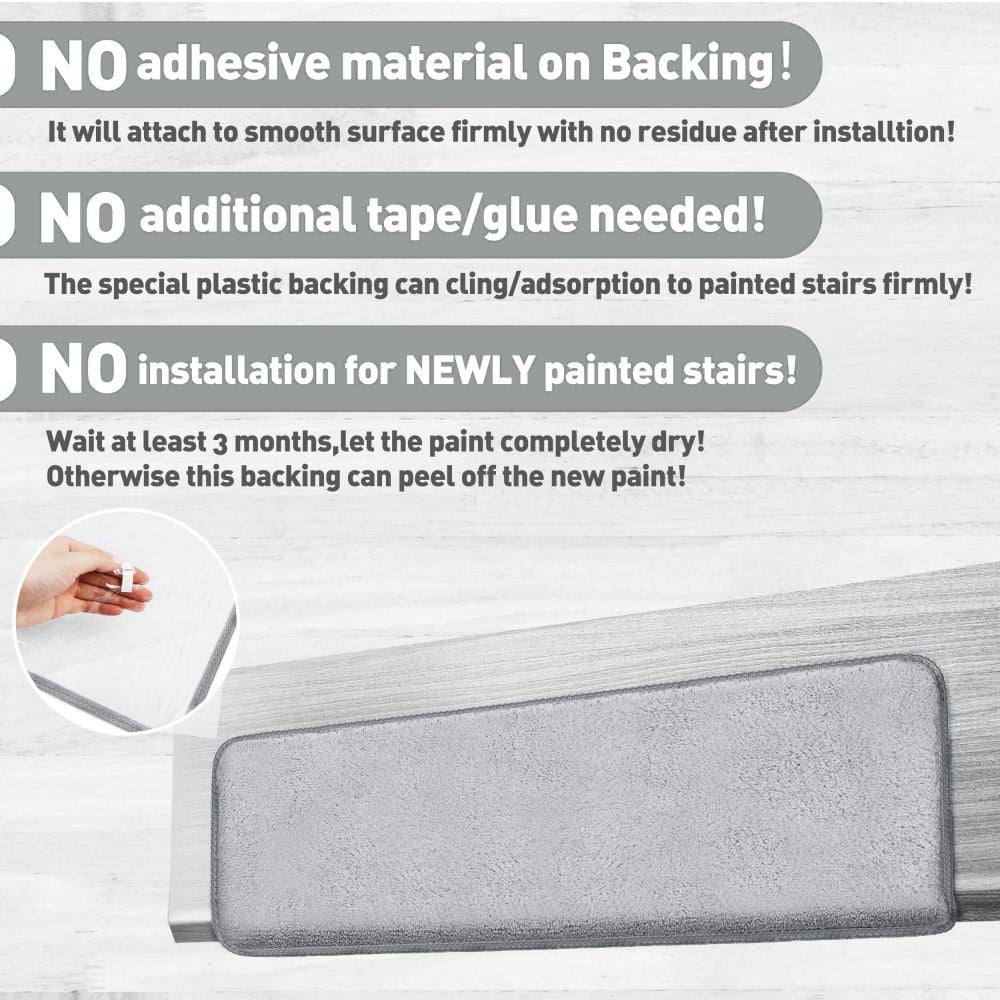 Solid Color Plush Stair Protectors Non-Slip Tape Free Carpet Stair Treads