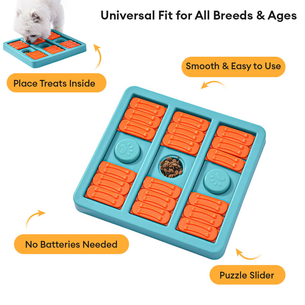 - Mental Stimulation & Engagement: Ideal for keeping dogs mentally active, this puzzle toy challenges your pet to solve it by sliding the pieces and uncovering hidden treats, which helps relieve boredom and reduce destructive behavior.