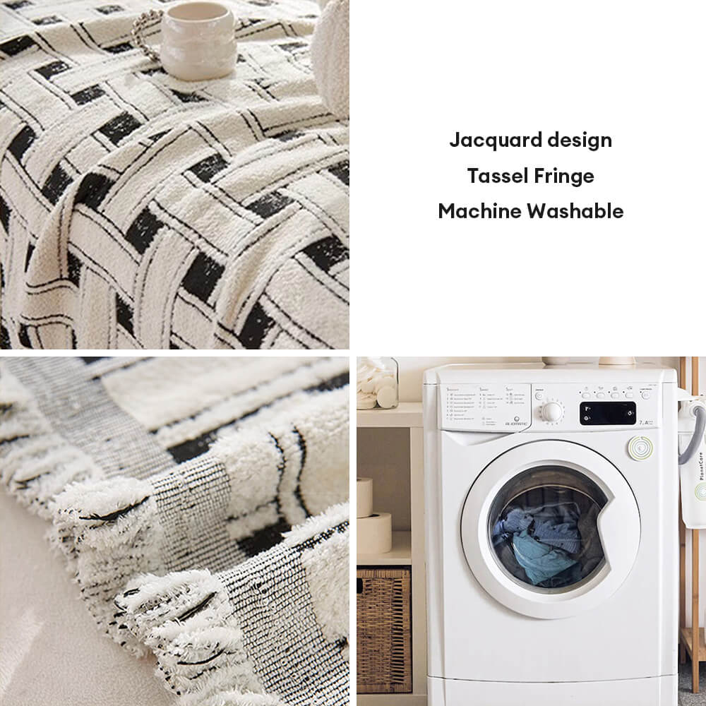 - Elegant Checkered Design: The stylish tassel fringe adds a chic and elegant touch to your decor. This carefully designed border complements the overall aesthetic, enhancing the beauty of your home while adding a unique, luxurious detail to the throw cover.