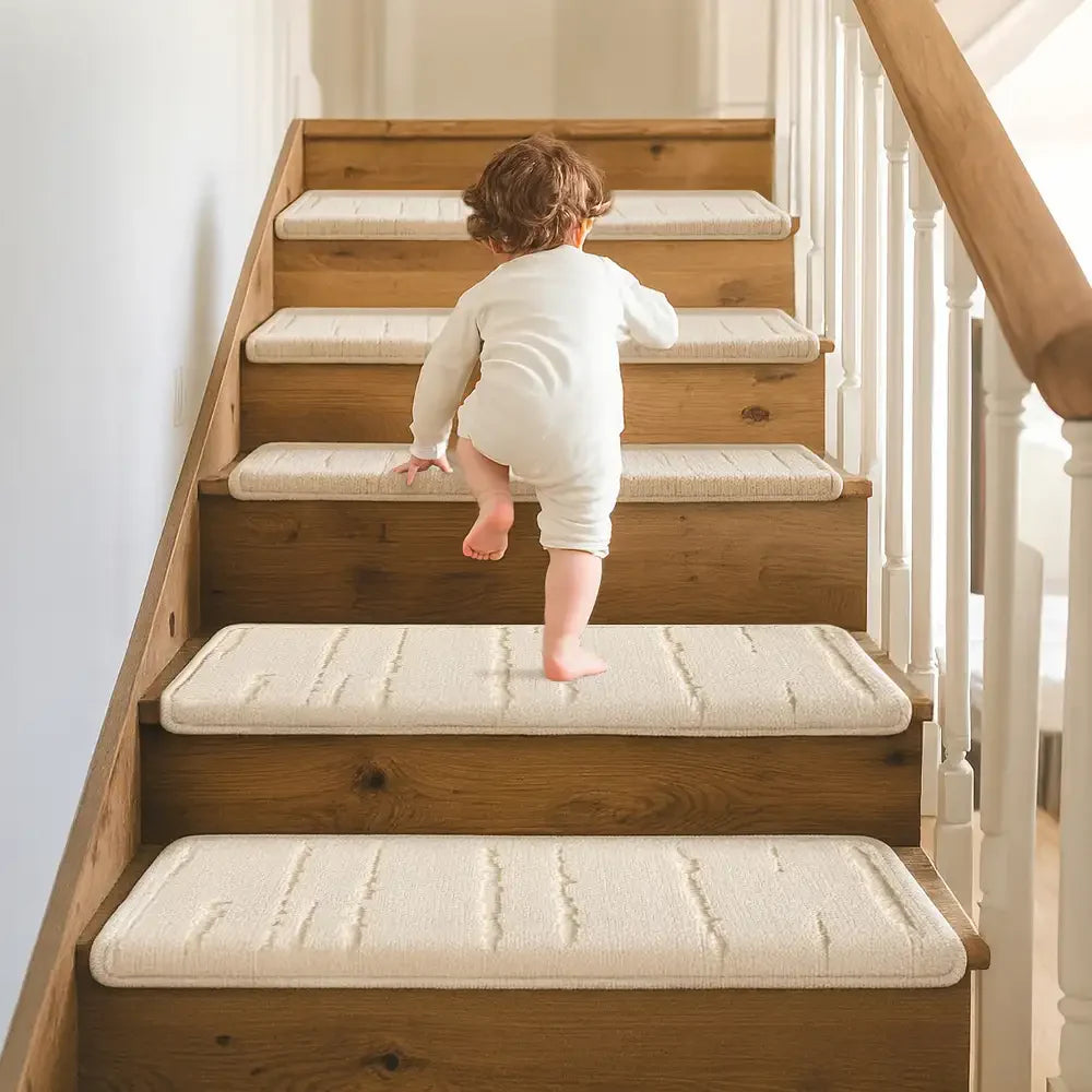 - Minimalist Style for Any Decor: Available in soft neutral tones with a tufted pattern, these stair treads enhance your home’s look without overpowering it. They blend seamlessly with rustic, modern, or minimalist interiors.